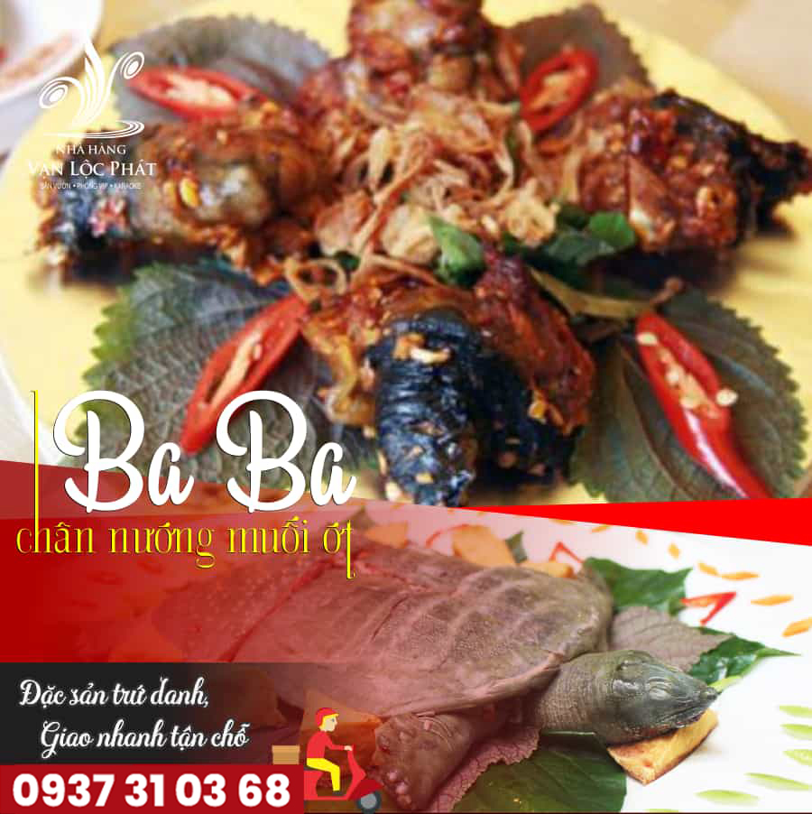 Thịt Ba ba tính hàn, vị thanh mát, thơm ngon, rất thích hợp để thưởng thức trong các buổi tiệc chiêu đãi bạn, đoàn tụ gia đình, liên hoan, gặp mặt, hội nhóm,...