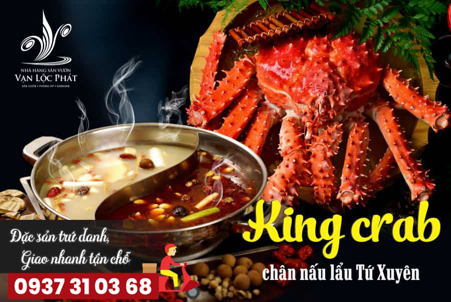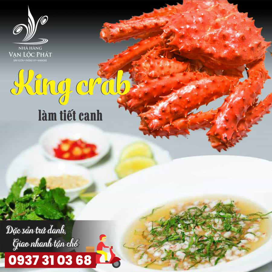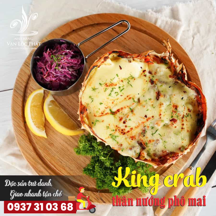 Cua KING CRAB được chế biến thành 3 món: Tiết canh + Thân nướng Phô mai + Càng cua hấp/ Nấu lẩu Tứ Xuyên.
