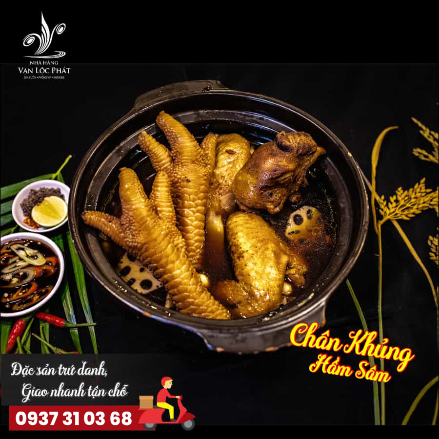 Chân hầm sâm: Vị thơm đặc biệt có được từ chân gà hòa tan cùng sâm khi ăn thì vừa giòn, dai dai cảm giác rất khác lạ. Ăn kèm với xà lách xoong, tần ô, ngải cứu.