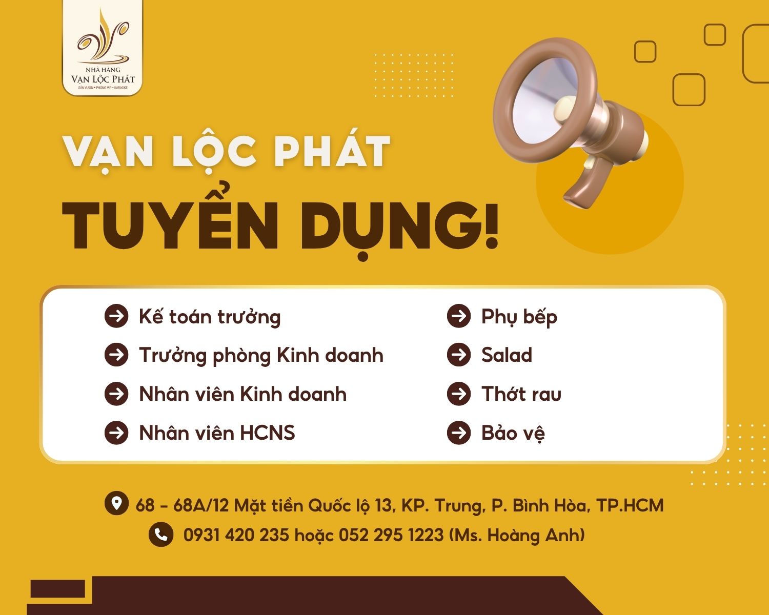 Hiện nay, Vạn Lộc Phát đang tuyển dụng các vị trí: